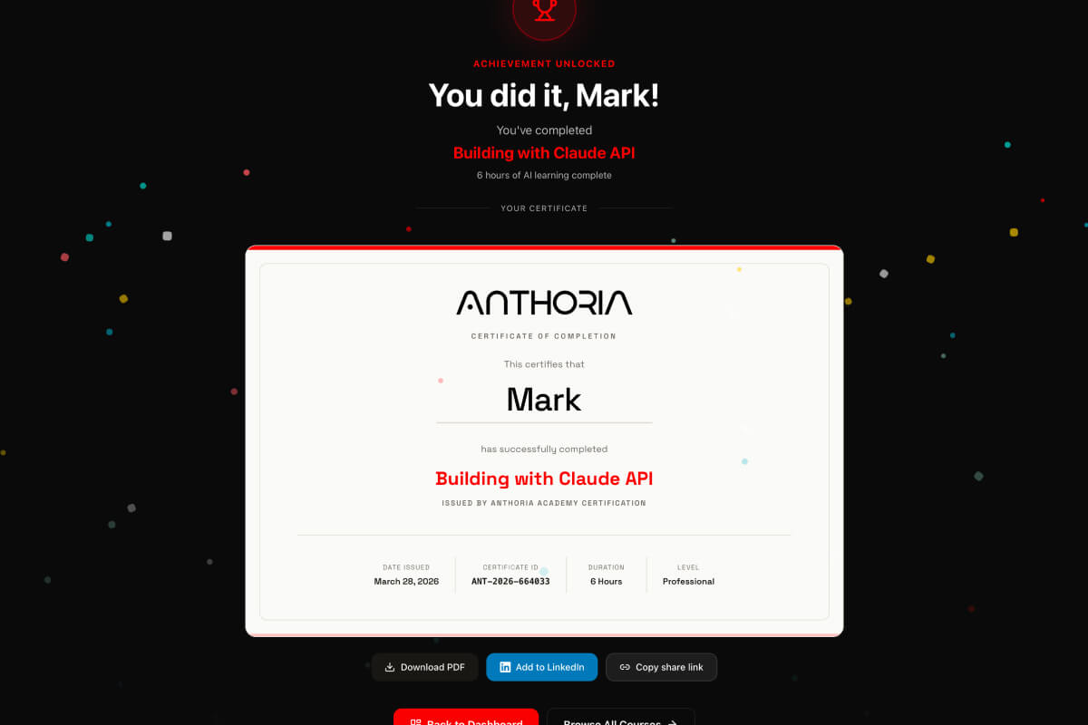 Complete a full series or learning “movie” and receive a professional certificate. Track your completed learning journeys and showcase your AI skills as you move forward.