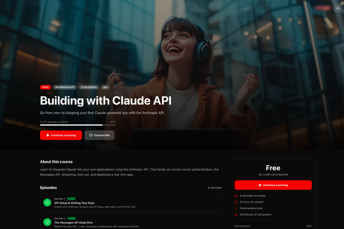 Continue where you left off, jump into new “episodes,” or start a new learning “series” based on your goals. Everything is organized so you can focus on watching, building, and progressing.